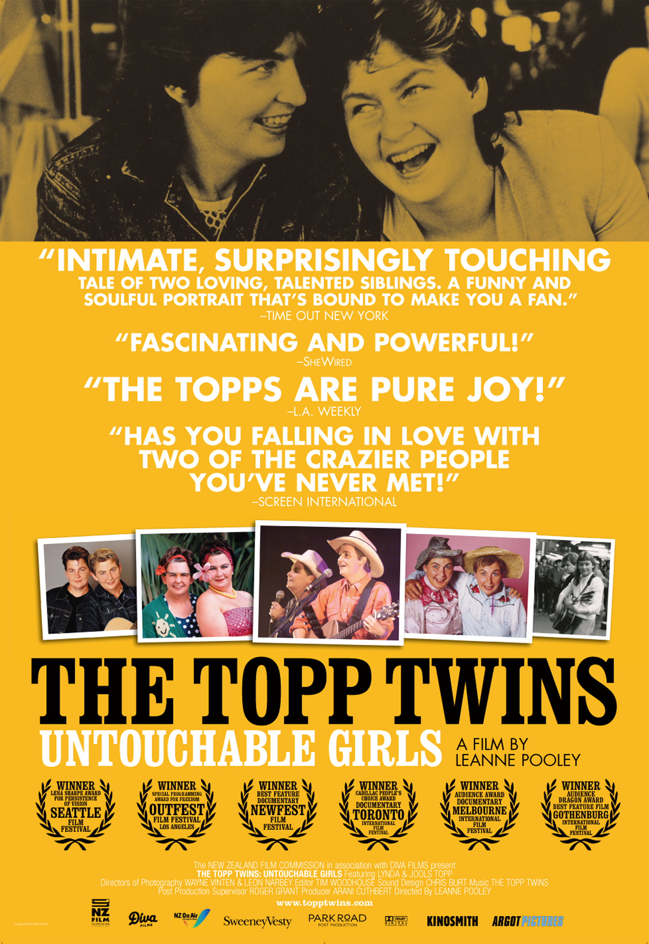 Winner of the Cadillac People’s Choice Award at the Toronto International Film Festival 2009 ‘The Topp Twins: Untouchable Girls’ tells the story of the world’s only comedic, singing, yodeling lesbian twin sisters, Lynda and Jools Topp, whose political activism and unique brand of entertainment has helped change New Zealand’s social landscape. In the process they have become well-loved cultural icons.